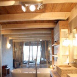 rdc 2 chambres, 1 chambre double, salle de bain, lingerie, wc, jacuzzi et sauna
