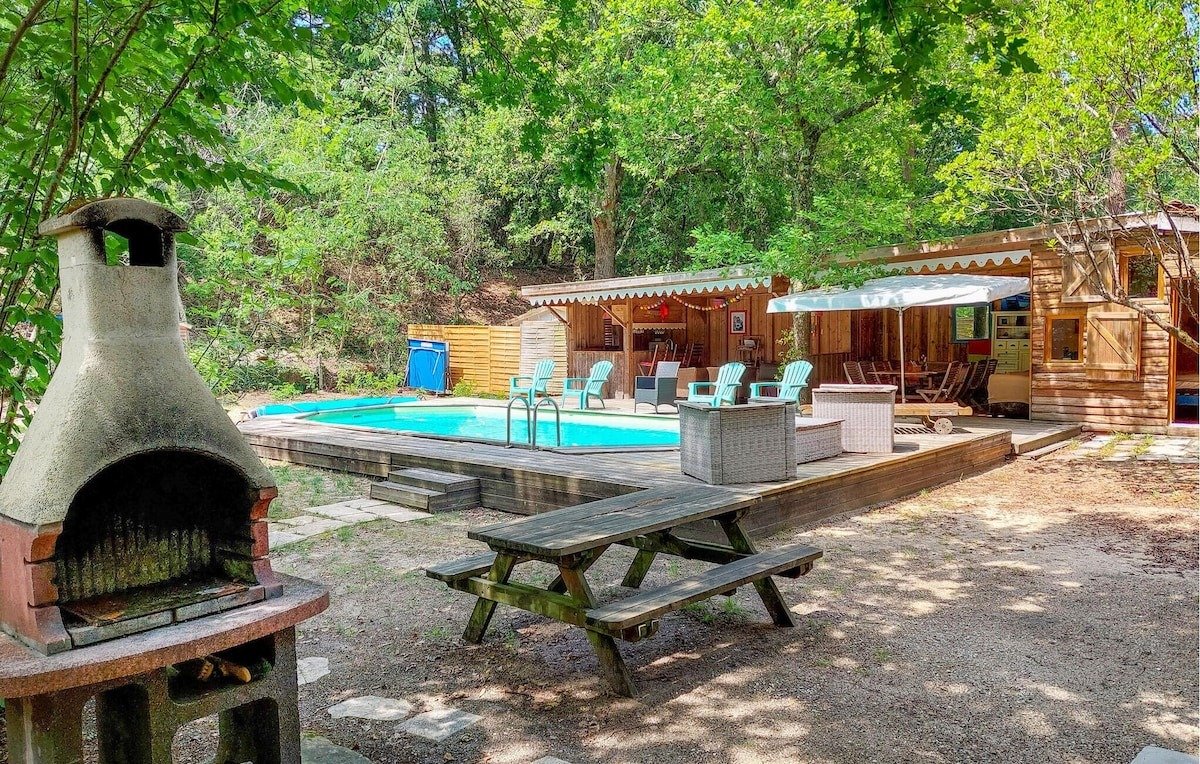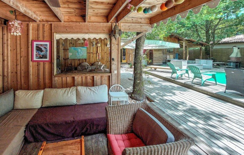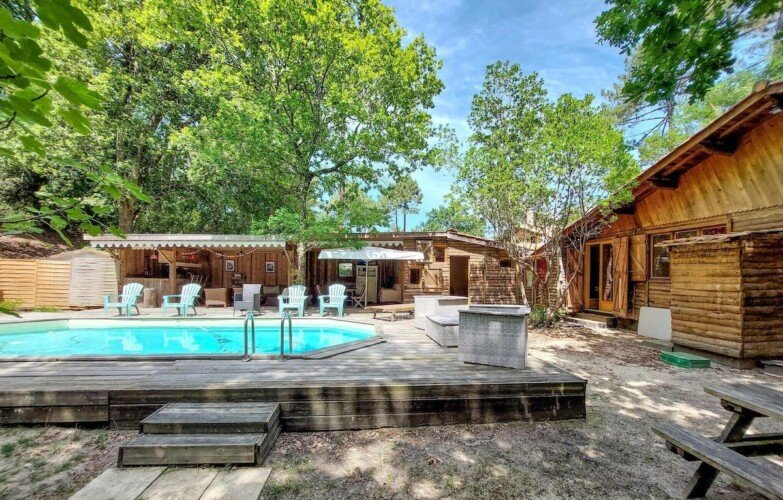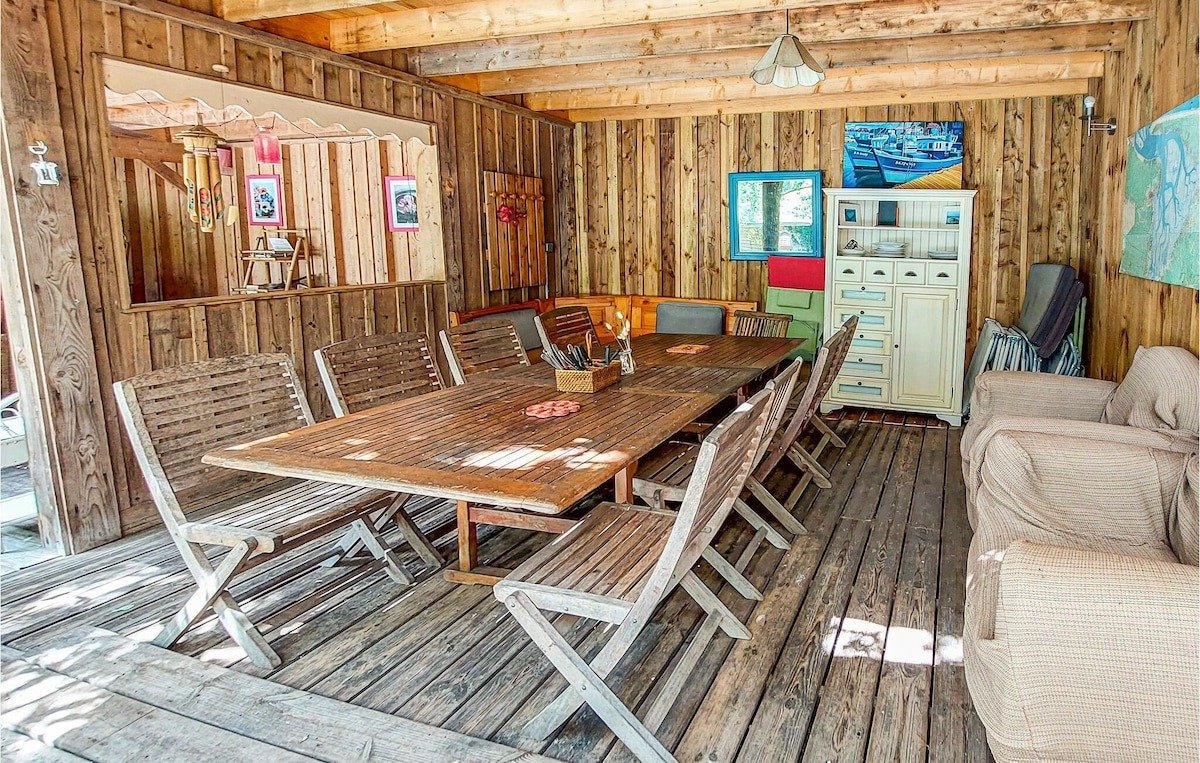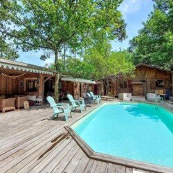 Cette maison de vacances vous donne rendez-vous à Cap Ferret, plus précisément en bord de lac. Envie de vous poser et d’admirer la beauté naturelle des lieux ? Les incontournables Bassin d’Arcachon et Baie de Biscaye vous attendent ! Les agréables Parc de Loisirs du Four et Kid Parc méritent aussi une visite. Les points d’eau de la région vous invitent à vous détendre dans et au bord de l’eau en vous adonnant à des activités telles que la natation. La maison, qui peut accueillir une famille nombreuse, vous accueille dans un cadre attrayant, entouré d’arbres et à quelques pas de la plage. Avec ses pièces accueillantes, dont le charme rustique est dû aux boiseries et aux poutres, la maison est l’endroit idéal pour passer un bon moment. Utilisez-la comme base pour de merveilleuses vacances à la plage et profitez du temps passé ensemble. Après une journée inoubliable, installez-vous confortablement au coin du feu et revivez vos aventures. L’espace extérieur de la maison offre de nombreux endroits agréables pour se détendre à l’ombre, profiter du soleil et passer de bons moments ensemble. Petits et grands s’amusent dans la piscine. N’interrompez vos bains de soleil que pour allumer le barbecue et déguster des boissons fraîches en plein air sur la terrasse. Promenez-vous sur la plage, la presqu’île vous attend avec ses magnifiques plages et ses forêts de pins odorantes. Ici, les amoureux de la nature, les baigneurs, les amateurs de sports nautiques et les gourmets se sentent tous à l’aise. Promenez-vous à pied ou à vélo dans une nature intacte, visitez des villages pittoresques et goûtez aux huîtres fraîches qui font la renommée du Cap Ferret. Réjouissez-vous de passer de bons moments en famille dans cette maison de vacances avec piscine !-
