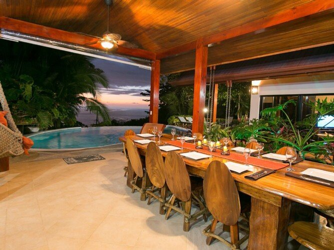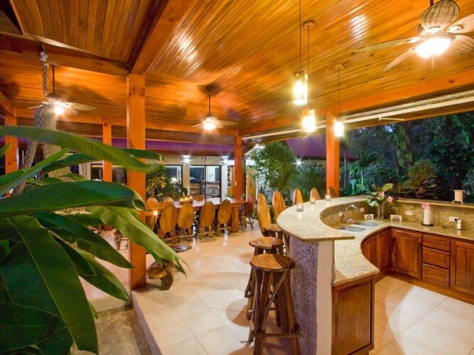 Avec jardins exquis, 6 chambres privées / salles de bains, cette propriété offre un confort extraordinaire pour l’ensemble de votre groupe. Toutes les chambres sont entièrement climatisées et hors de vue de l’autre avec 4 chambres dans la maison . Un bar personnalisé avec un téléviseur à écran plasma, salle pour l’ensemble de votre groupe et de confortables chaises sont toutes joliment situé pour profiter des jardins tropicaux et donnent sur la très agréable cascade / piscine à débordement (avec tabourets de bar dans la piscine) et une pataugeoire avec jets d’eau pour les enfants à jouer dans tout, qui surplombe le magnifique océan Pacifique. Les 30 pieds de hauts plafonds en bois offrent une excellente ventilation et portes de verre coulissantes tout autour, ou pour le fermer et profiter de l’expérience dans le confort, entièrement climatisé. Il ya aussi 7 plasma TV dans la Villa ainsi que 7 haut-parleurs Bluetooth dans chaque chambre, salon et Rancho! Type de propriété:Domaine