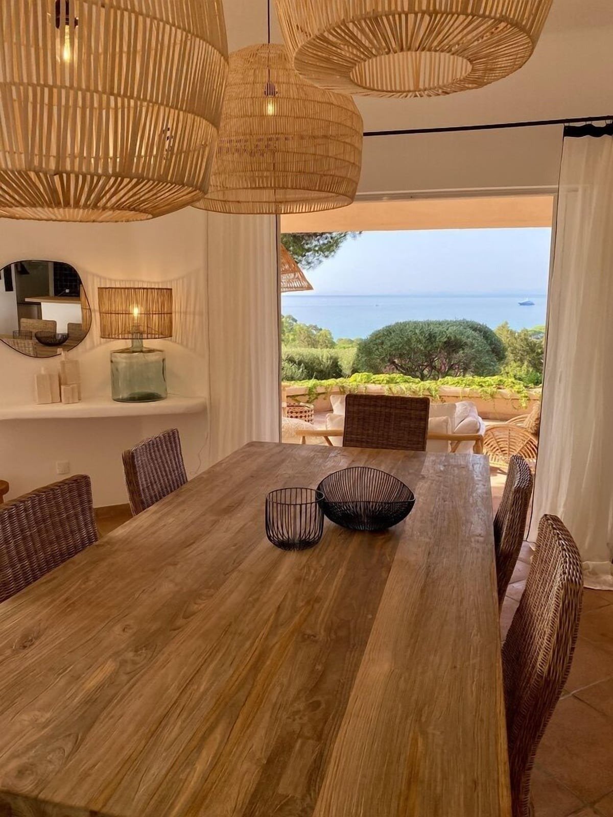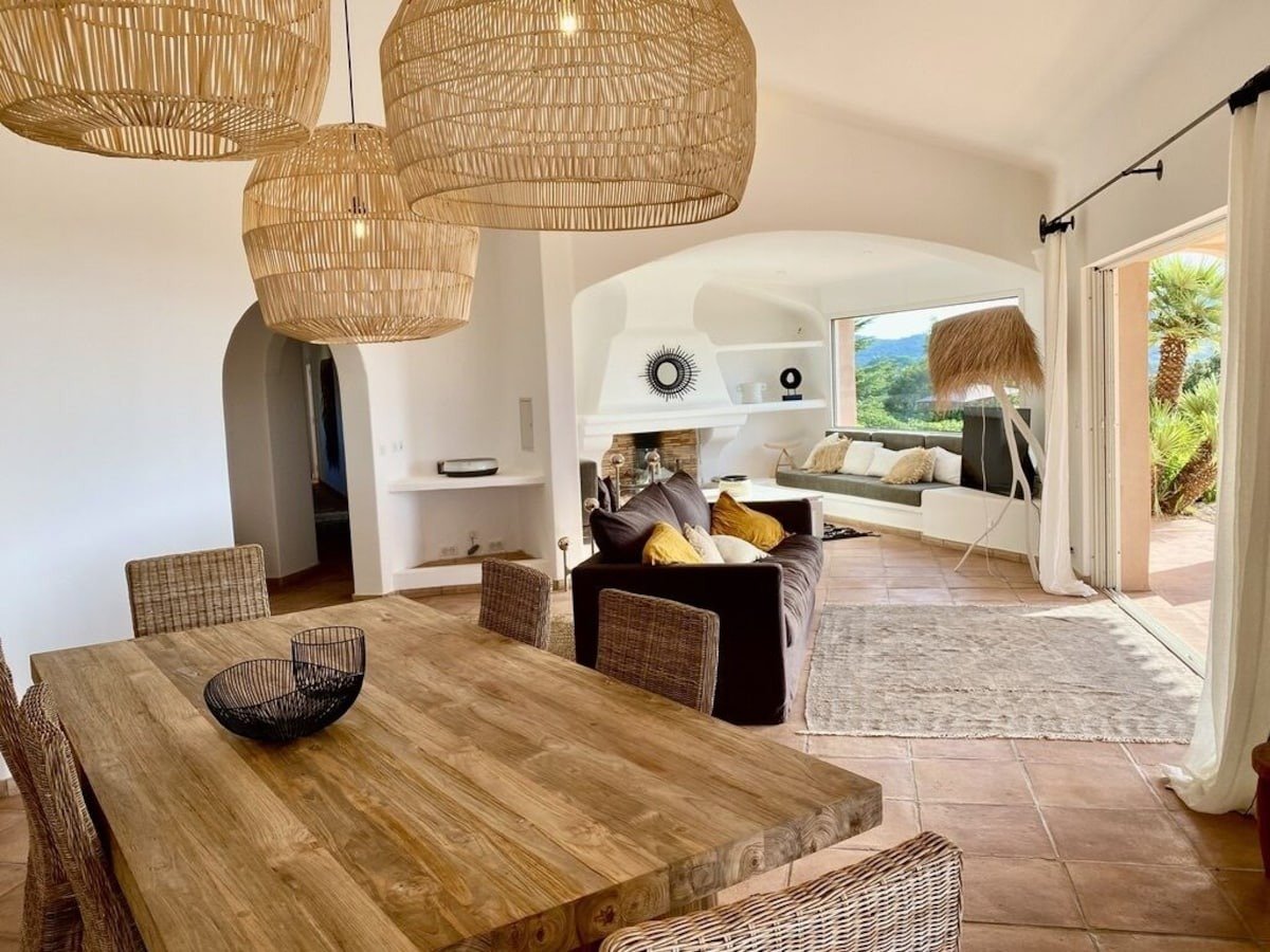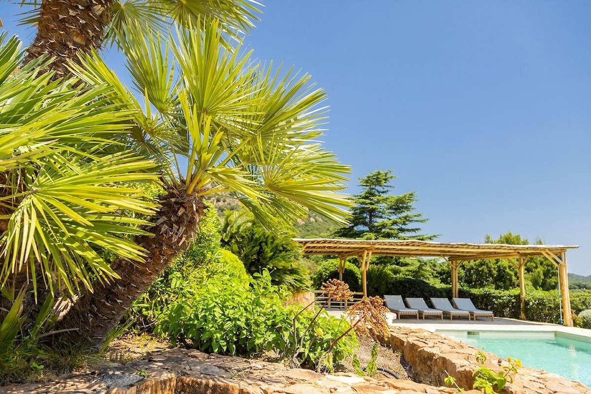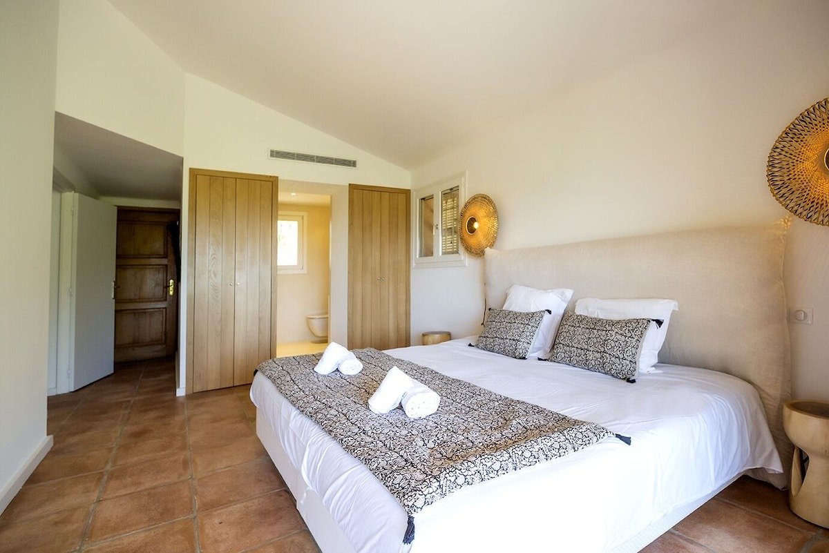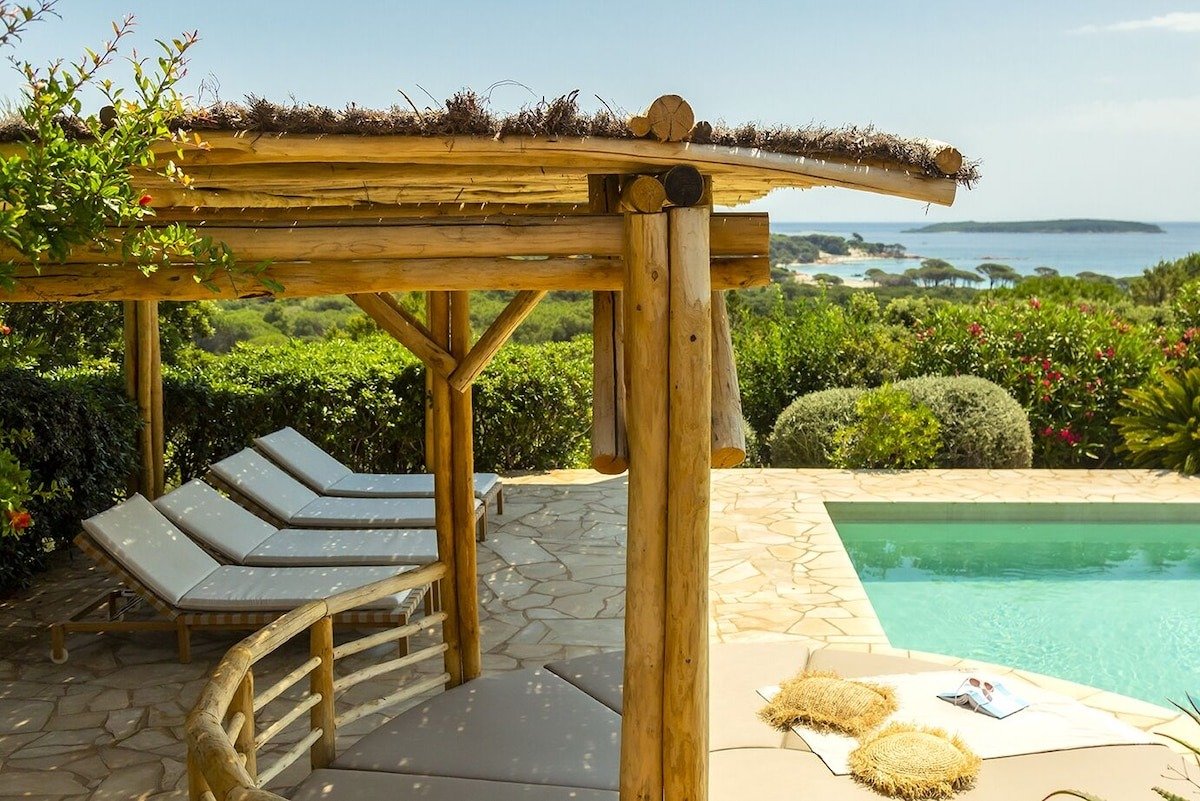 Villa 5 chambres vue panoramique sur Palombaggia. Accès mer 10 min à pied. Cette magnifique demeure de plein pied de 250 m2 offre une vue panoramique sur la plage de Palombaggia, son eau turquoise et ses légendaires pins parasols. La villa comprend 4 chambres d’adultes (lits doubles) et 1 chambre d’enfants (2 lits superposés), toutes climatisées, rénovées dans un style différent, avec terrasse vue mer ou jardin, et disposant d’une salle de bain individuelle pour chacune d’elles. Disposée au milieu d’un parc arboré de 4000 m2, la villa dispose d’une grande piscine totalement refaite et de vastes terrasses ombragées qui l’entourent et prolongent les pièces principales et les chambres. La plage de Casa Di Lume est accessible à pied en 10 minutes. Une petite supérette (avec dépôt pain) se situe à quelques minutes à pied de la maison. Un vaste séjour double avec coin feu, télévision 4K avec abonnement Canal+ et Canal Sat (bouquets cinéma, enfants, sport) sont à disposition. La cuisine équipée offre plaque cuisson Induction, four électrique, micro-onde, frigidaire américain, cafetière Nespresso, cellier/buanderie avec lave-linge et sèche-linge. Pour agrémenter vos soirées en famille ou entre amis, une grande Plancha Forge Adour est votre disposition. Cette villa vous donne rendez-vous à Porto-Vecchio, plus précisément à la montagne, près de la plage. Envie de vous poser et d’admirer la beauté naturelle des lieux ? Les incontournables Plage de Palombaggia et Plage de Santa Giulia vous attendent ! Les points d’eau des environs sont le décor idéal pour vous adonner à de nouvelles activités telles que le jet-ski et la plongée sous-marine tandis que les amoureux d’aventures en plein air pourront plutôt opter pour l’alpinisme et les promenades à cheval. Chambres et lits 5 chambres (10 personnes) Chambre 1 : 1 très grand lit Chambre 2 : 1 très grand lit Chambre 3 : 1 très grand lit Chambre 4 : 2 lits superposés (1 place) Chambre 5 : 1 très grand lit 3 salles de bain, 1 WC avec lavabo Salle de bain 1 : Toilettes · Douche uniquement Salle de bain 2 : Toilettes · Douche uniquement Salle de bain 3 : Baignoire ou douche · Toilettes · Douche uniquement Salle de Bain 4 : Toilettes · Douche uniquement Salle de Bain 5 : Toilettes · Douche uniquement WC commun Toilettes Espaces Terrasse/Patio Salle à manger 10 places assises Cuisine Pelouse/Jardin Salle de séjour Meilleurs équipements pour les familles Cuisine Micro-ondes Salon/salle à manger Équipements populaires Parking disponible Lave-linge Piscine Climatisation Cheminée Sèche-linge Espace extérieur Vue sur l’océan Plage Plage à proximité Piscine/spa Piscine chauffée Piscine extérieure Piscine privée Internet Disponible dans la villa : Wi-Fi Parking et transports Voiture nécessaire Parking sur place Cuisine Batterie de cuisine, vaisselle, ustensiles Bouilloire électrique Cafetière ou bouilloire Four Four à micro-ondes Grille-pain Lave-vaisselle Plaque de cuisson Réfrigérateur Chambres 5 chambres Salle de bain 3,5 salles de bain Baignoire ou douche Douche Sèche-cheveux Espaces de vie Cheminée Salle à manger séparée Salle de séjour Divertissements Télévision avec chaînes par câble ou par satellite Espaces extérieurs Jardin Mobilier d’extérieur Patio Buanderie Machine à laver Confort Chauffage Climatisation Accessibilité Hébergement non-fumeurs Services et équipements Fer et planche à repasser Service de ménage (sur demande) Services de conciergerie Points forts de l’endroit Au cœur des montagnes Près de l’océan Près de la baie Activités Piscine chauffée Alpinisme à proximité Bateau à moteur à proximité Équitation à proximité Jet-ski à proximité Natation à proximité Observation d’oiseaux à proximité Pêche à proximité Plongée avec tuba à proximité Plongée sous-marine à proximité Sentiers de randonnée à pied ou à vélo à proximité Ski nautique à proximité Tubing à proximité Voile à proximité VTT à proximité À proximité Plage de Palombaggia – 10 min à pied Plage de Tamaricciu – 2 min en voiture Palombaggia Pond – 2 min en voiture Plage de Carataggio – 8 min en voiture Asciaghju – 10 min en voiture Comment se déplacer Figari (FSC-Figari-Corse du Sud) – 34 min en voiture Propriano (PRP-Tavaria) – 86 min en voiture Restaurants Belvedere de Palombaggia – 7 min à pied La Table de Mina – 8 min à pied Palombaggia Beach – 9 min à pied Cala di lume – 10 min à pied Cala Di Lume – 10 min à piedDétails