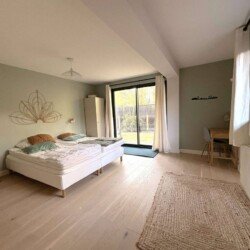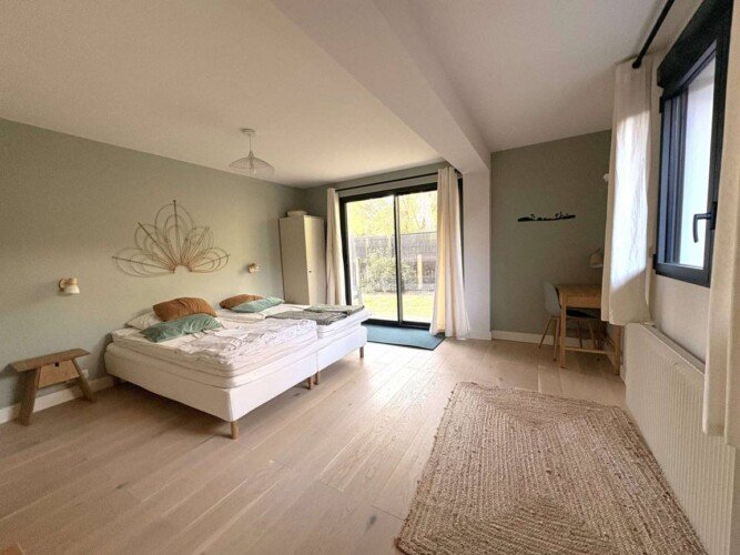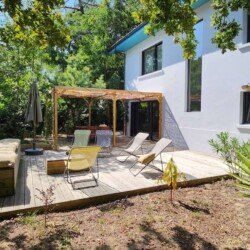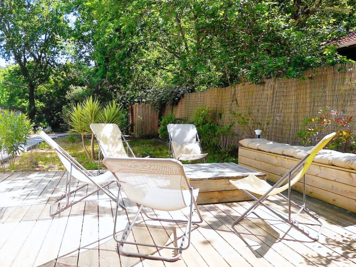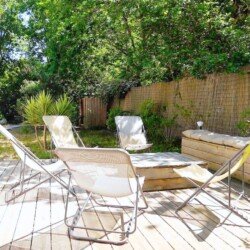 Elle est entourée d’un superbe jardin clos et arboré de 800 m², comprenant une agréable terrasse aménagée, une pergola, une plancha/barbecue WEBER au gaz, ainsi qu’une douche extérieure avec eau chaude et froide idéale pour le retour de plage.
