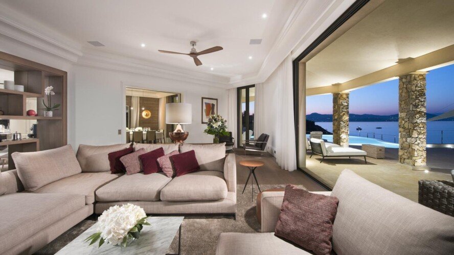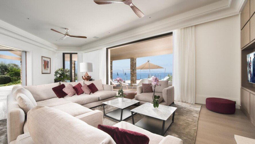 Cette propriété de luxe, avec 6 chambres en suite et 7 salles de bains, offre un accès direct à la mer. La villa offre un haut niveau de confort et tout a été fait pour que vous vous sentiez comme chez vous. Non seulement il a de beaux espaces intérieurs tels que des salles à manger et des zones de détente, mais aussi une piscine extérieure privée qui peut être chauffée et des terrasses pour profiter du temps magnifique de la région. L’un des principaux avantages de la villa est qu’elle est entièrement équipée, avec un concierge, un majordome, un chef et un service de ménage quotidien qui garantira que tout est parfait pour votre séjour. Situé dans le quartier exclusif et privé des Parcs, mais à seulement 9 minutes en voiture de Saint Tropez où se trouve le Vieux Port où sont amarrés des yachts étincelants, ainsi que des cafés animés, des boutiques, des restaurants ou des galeries d’art. Les chambres Chambre 1 Chambre de maître. La chambre propose 1 lit double 200 cm. Salle de bain privée, avec douche. La chambre inclut également : climatisation, salon, TV, coffre fort, dressing. Chambre 2 Chambre. La chambre propose 1 lit double 180 cm. Salle de bain privée, avec douche, 1 vasque. La chambre inclut également : climatisation, TV, coffre fort. Chambre 3 Chambre. La chambre propose 1 lit double 180 cm. Salle de bain privée, avec douche, 1 vasque. La chambre inclut également : climatisation, TV, coffre fort. Chambre 4 Chambre. La chambre propose 1 lit double 180 cm. Salle de bain privée, avec 2 vasques, douche. La chambre inclut également : climatisation, TV, coffre fort. Chambre 5 Chambre. La chambre propose 1 lit double 200 cm. Salle de bain privée, avec 2 vasques, douche. La chambre inclut également : climatisation, TV, coffre fort. Chambre 6 Chambre. La chambre propose 1 lit double 180 cm. Salle de bain privée, avec douche, 1 vasque. La chambre inclut également : climatisation, TV, coffre fort. Les intérieurs Vous pourrez apprécier 6 chambres en suite, un agréable salon, une cuisine de designer, une salle de télévision et une belle salle à manger. La maison dispose aussi de WC invités. Les extérieurs La propriété offre d’incroyables extérieurs. Vous pourrez profiter d’une piscine à débordement (chauffée), de vastes terrasses couvertes et de jolis jardins. La propriété comprend également une piste d’atterrissage pour hélicoptère. Situation La villa est située dans les Parcs de Saint Tropez, un quartier très privé à proximité de Saint Tropez. Vous serez en effet à seulement seulement 9 minutes en voiture de Saint Tropez, où vous trouverez des boutiques glamour, des restaurants ou des galeries. A l’extérieur JardinParking Terrasse(s) Transats au bord de la piscine Transats sur la terrasse A proximité: Accès direct à la mer Cuisine & Electro-Ménager: Cuisine équipée Equipements de cuisine de qualité Equipement, installations, évènements: Héliport Piste d’hélicoptère Ponton privé pour bateau Système d’alarme Loisirs, bien-être & activités sportives: Accès internet (wifi) Embarcadère privé pour bateau Gym – Fitness room Piscine à débordement Piscine extérieure chauffée Sonorisation SONOS Pour votre confort et votre agrément Air conditionné Salle à manger Salon Sèches-cheveux Terrasse Ce qui est Inclus Inclus dans le prix de location Consommation électrique, eau, gaz Draps et linge changés 2 fois par semaine Draps et linge de maison Entretien du jardin et de la piscine Femme de ménage Fleurs de bienvenue & champagne Fourniture et changement des serviettes de bain, selon les besoins. Internet WIFI Ménage en fin de séjour Ménage quotidien Service de conciergerie Serviettes de bain Serviettes de piscine Thé et café Villa Manager Voiture avec chauffeur Prestations avec participationDétails